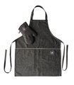 Táto sada je určená pre každého milovníka grilovania! Je vyrobená z čierneho denimového materiálu, ktorý pri grile krásne vynikne. Zástera má univerzálny rozmer a jej dĺžku možno nastviť pomocou karabínky. Dve priestrané vrecká sú určené pre grilovacie pomôcky či koreniny. Punc zástere dodávajú dve výšivky s motívom grilovania. Vďaka možnosti výšivky mena sa výborne hodí ako darček pre každého milovníka grilovania!